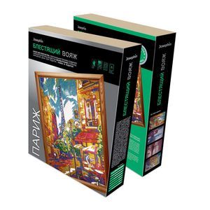 В наборе есть все необходимое, чтобы создать сияющую картину из блесток с изображением своего любимого города. А если настроение изменилось, то