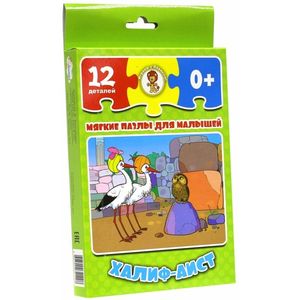 Мягкие пазлы развивают мелкую моторику рук, логическое мышление, усидчивость и внимательность. Собирая картинку, ваш малыш учится соотносить часть и целое, подбирать фрагменты по цвету, форме и размеру. А результат игры порадует его иллюстрацией к любимой сказке 'Халиф-Аист'. Размер готовой картинки 26 на 19,5 см.