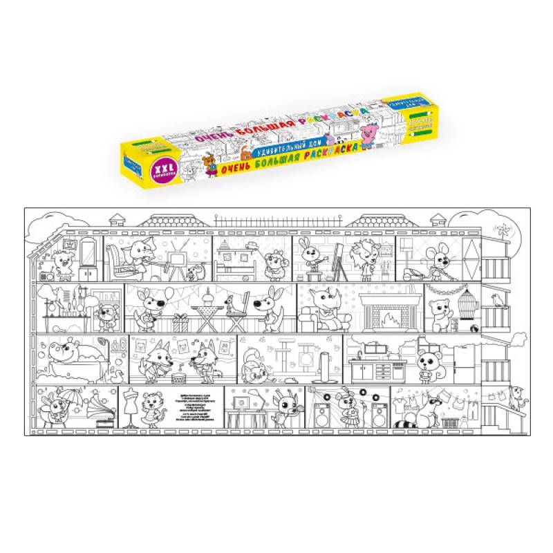 Эта раскраска - плакат станет отличным развлечением для всей семьи: её могут раскрашивать одновременно несколько человек! В ней вы познакомитесь с обитателями весёлого домика, про которых можно придумывать собственные истории, что превратит раскрашивание в увлекательную игру. Когда картинка будет полностью раскрашена, можно повесить её на стену и любоваться своим творением!