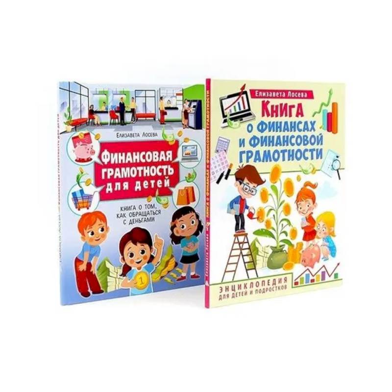 Комплект содержит книги.  'Книга о финансах и финансовой грамотности'  В мире очень много самых разных денег. Это и бумажные, и металлические, и даже электронные, монеты и купюры. И, хотя верно говорят, что счастье не в них - без денег жить непросто. А вот для того, чтобы научиться быть хозяином своим деньгам нужно знать и о них, и о современном финансовом мире как можно больше! Мы надеемся, что эта книга и её воображаемые герои Монеткина, Жадина и Тютя научат тебя разбираться в самых разных, иногда сложных, вопросах, например, расскажут о банках и кредитных картах, подскажут, как планировать свой, может быть пока небольшой, личный бюджет.  'Финансовая грамотность для детей'  В мире очень много самых разных денег. Это и бумажные, и металлические, и даже электронные, монеты и купюры. И, хотя верно говорят, что счастье не в них - без денег жить непросто. А вот для того, чтобы научиться быть хозяином своим деньгам нужно знать и о них, и о современном финансовом мире как можно больше! Мы надеемся, что эта книга и её воображаемые герои Монеткина, Жадина и Тютя научат тебя разбираться в самых разных, иногда сложных, вопросах, например, расскажут о банках и кредитных картах, подскажут, как планировать свой, может быть пока небольшой, личный бюджет.