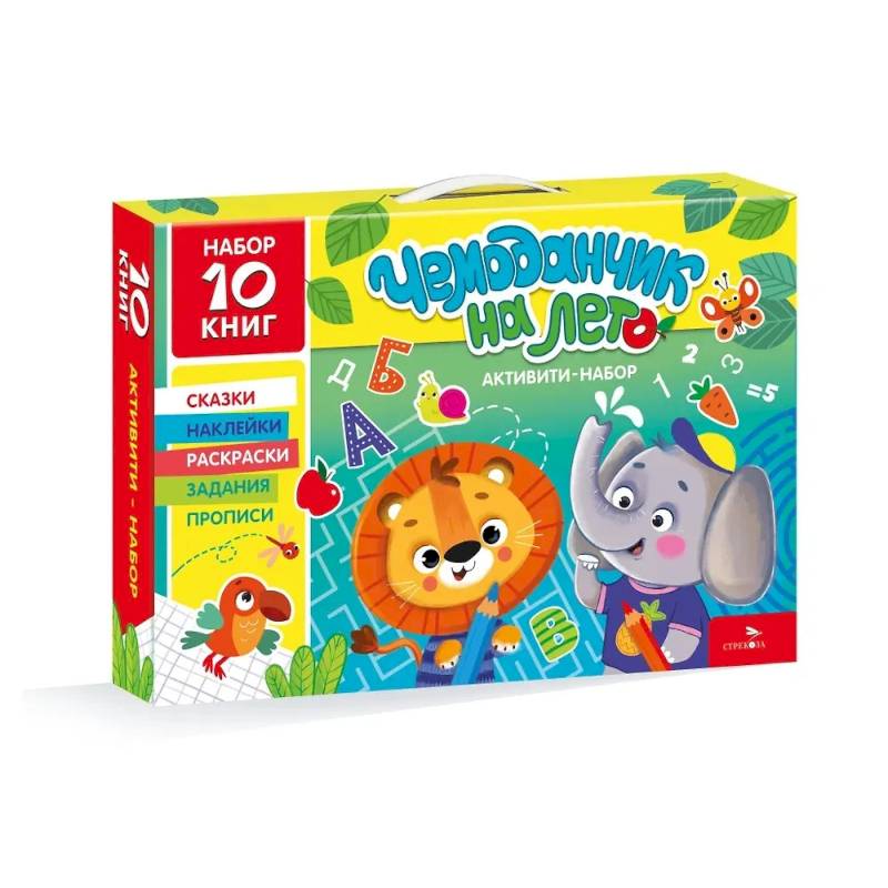 Комплект 'Активити-набор 'Чемоданчик на лето', с развивающими книгами для дошкольника, включает в себя 10 книг для занятий и отдыха вашего ребёнка: