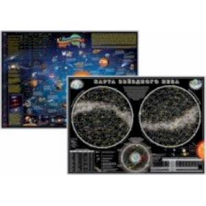 На карте вы найдете общую информацию о Солнечной системе и карте Звездного неба, факты из истории космонавтики, изображения космических объектов и летательных аппаратов и многое другое.