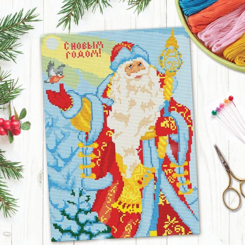 —Новогодняя вышивка крестиком «С Новым годом!» 25x35 см. Набор для творчества