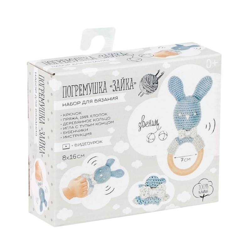 —Погремушка «Зайка» голубая, набор для вязания